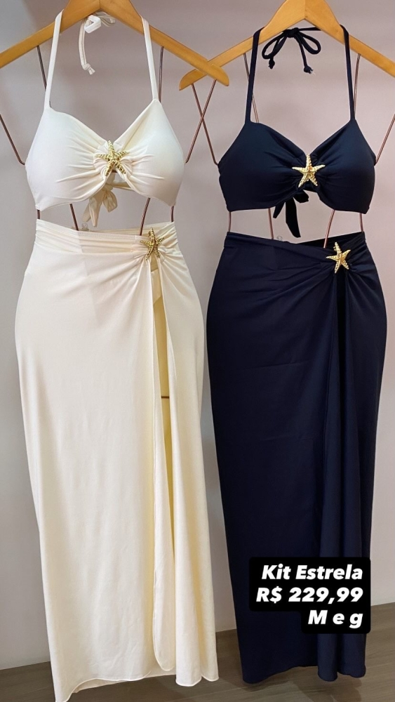 👙 Biquíni + Saída longa de praia ✨ Kit inteiro no poliamida ✨ Tamanho G (veste do 44 ao 48) ✨ Com bojo e lycra de qualidade ✨ Detalhe exclusivo de estrela dourada no top do biquíni e na saída 💛